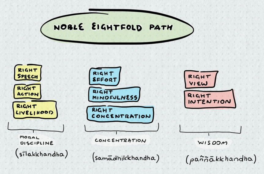 The middle way: “gives rise to vision, gives rise to knowledge, and leads to peace, to direct knowledge, to enlightenment, to Nibbana”